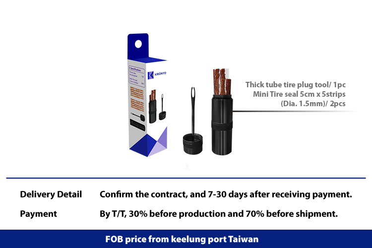 Thick tube tire plug tool(needle dia. 3mm)/ 1pc Mini Tire seal 5cm x 5strips (Dia. 1.5mm)/ 2pcs