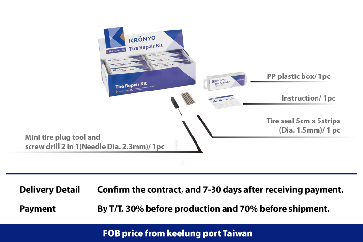 Mini tire plug tool and screw drill 2 in 1(Needle Dia. 2.3mm)/ 1pc Mini Tire seal 5cm x 5strips(Dia. 1.5mm)/ 1pc