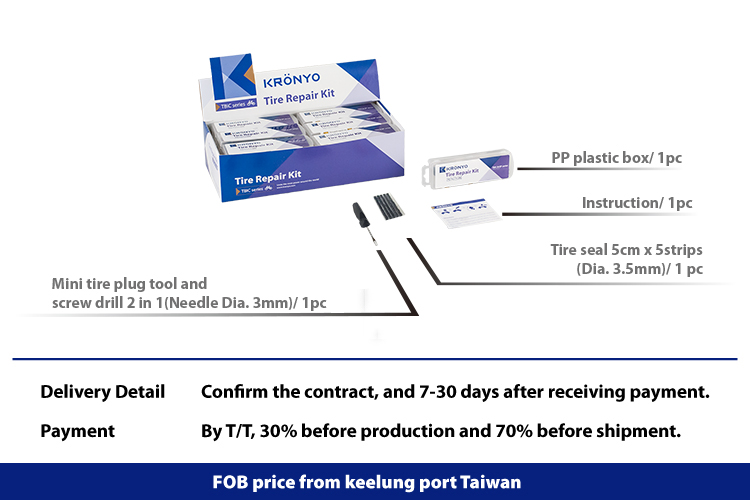 Mini tire plug tool and screw drill 2 in 1(Needle Dia. 3mm)/ 1pc Mini Tire seal 5cm x 5strips(Dia. 3.5mm)/ 1pc
