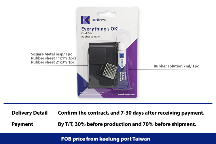 Rubber solution 7ml/pc Metal rasp/pc Rubber sheet 1″X 1″ 3/pcs Rubber sheet 2″X 3″ /pc