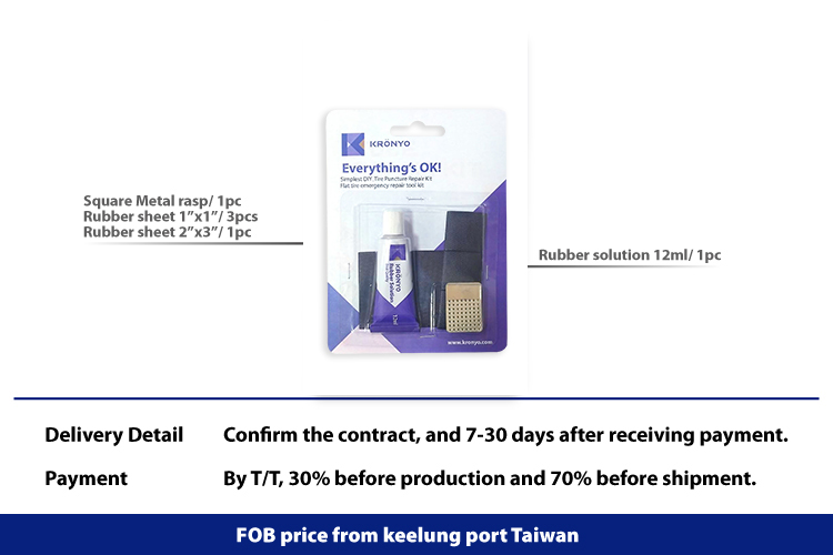 Rubber solution 12ml/ 1pc Metal rasp/ 1pc Rubber sheet 1″ x 1″/ 3pcs Rubber sheet 2″ x 3″/ 1pc